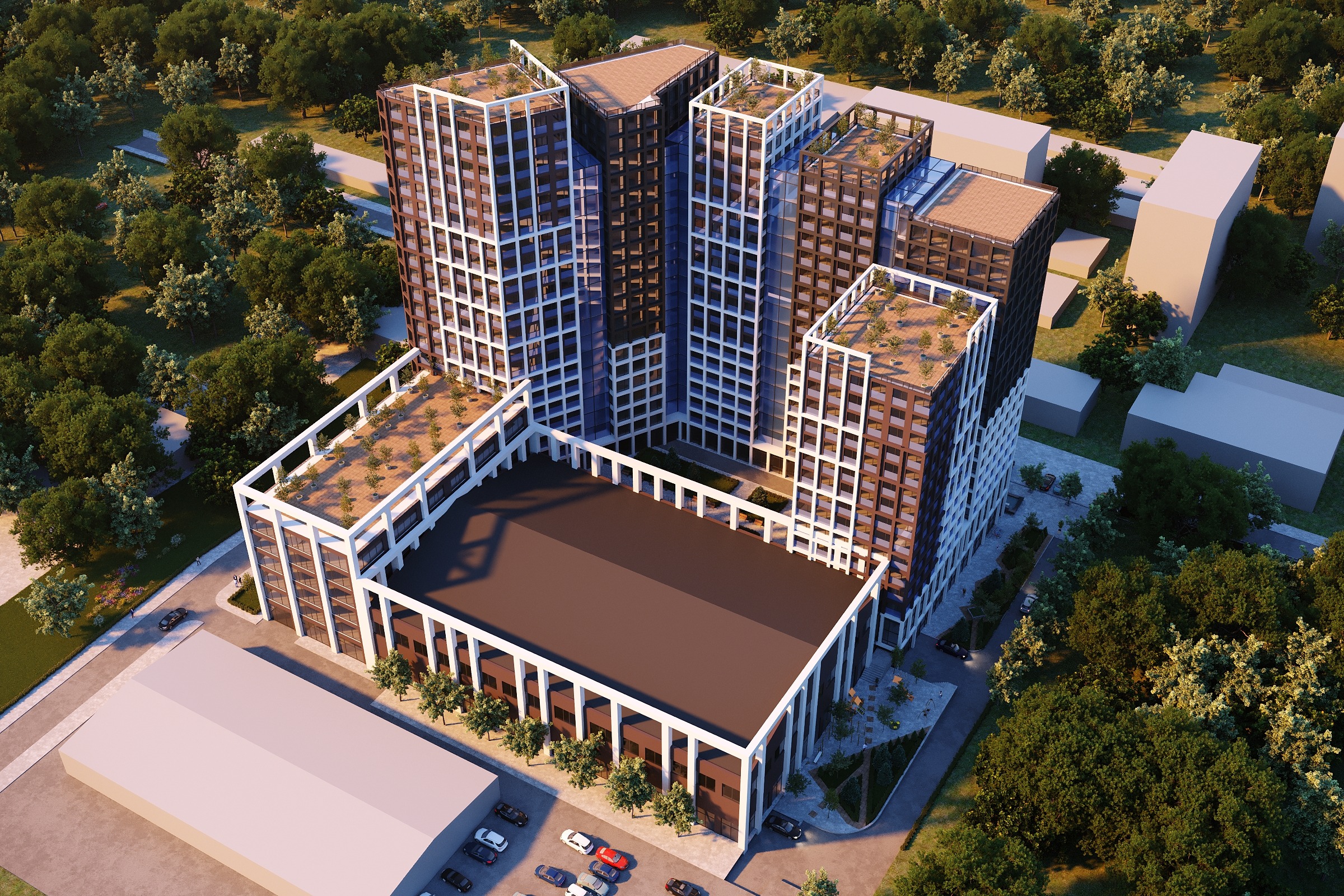 Комплекс располагается в уютном и экологичном месте, где каждый может уединиться и побыть в тишине зеленой зоны, которая идеально сочетается с близостью к транспортной развязке.