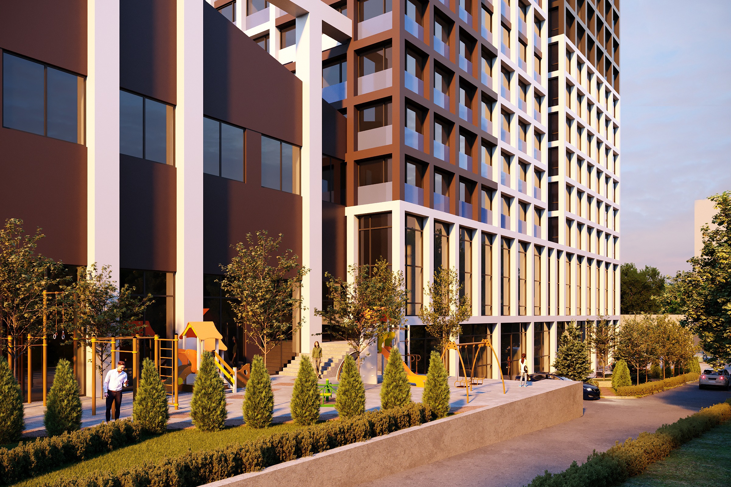 Закрытый охраняемый внутренний двор с обустроенными детскими площадками и ландшафтным дизайном. Зона отдыха на крыше станет отличным местом, где можно отдохнуть в приятной компании и насладиться панорамным видом на город.