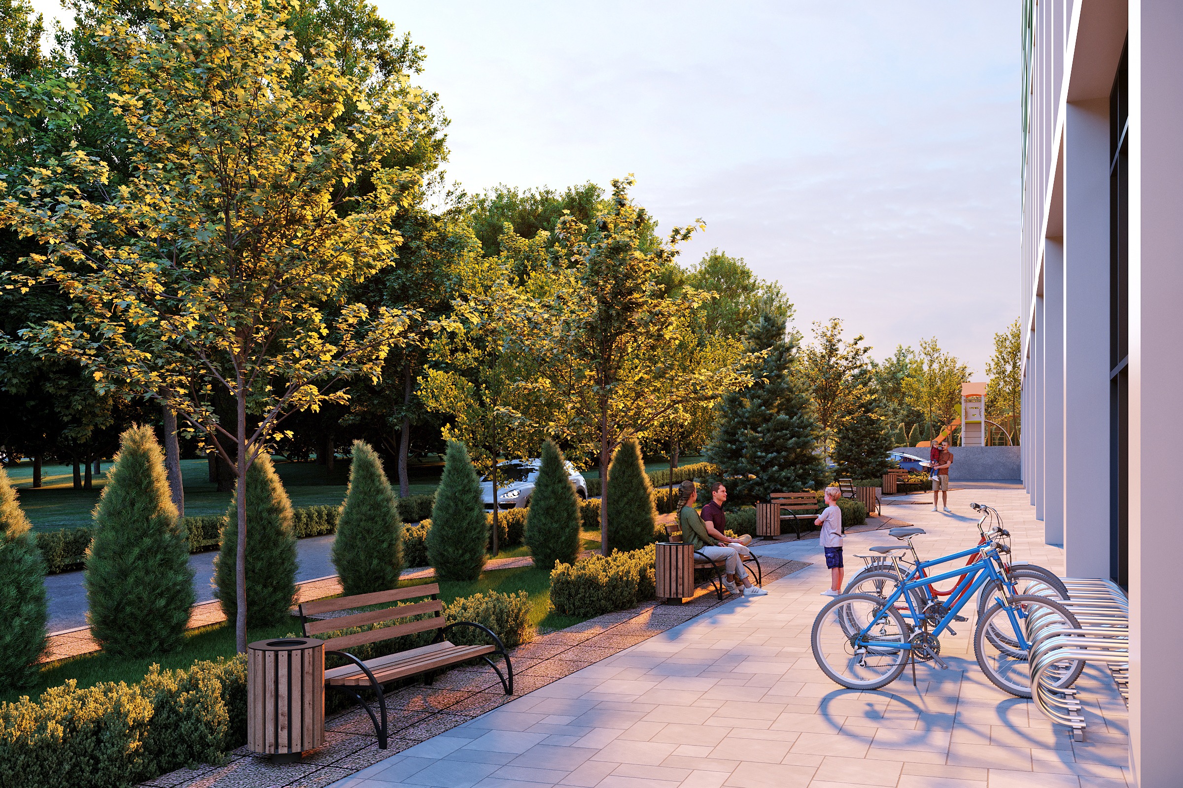 В комплексе будут созданы все условия для размещения любого вида транспорта: трехуровневый подземный паркинг для машин и мотоциклов, зарядки для электромобилей и велопарковка во дворе.